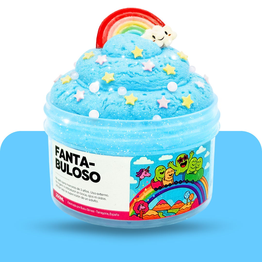 Fantabuloso es un slime azul claro de textura suave y muy esponjosa, pensado para apretar, estirar y disfrutar sin complicarte. No mancha y es muy fácil pasarte horas con él. Huele a galleta María con caramelo, una mezcla agradable que engancha desde el primer momento.